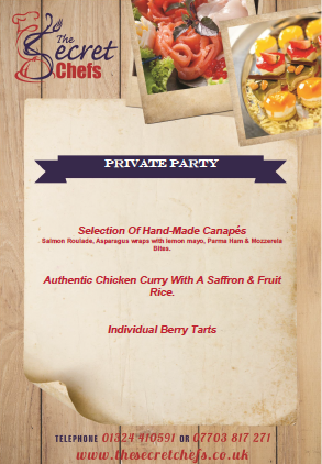 We have listed a selection of sample menus below to give you a glimpse of the catering we have provided to previous customers. Our growing portfolio consists of menus which we have specifically personalised for events in the past all of which are available on request. We pride ourselves on our ability to personalise a menu to specific food requirements and budgets to ensure all customers get the best value for money possible. To look at any of the menus below in more detail click on the image or the download link just below the image.